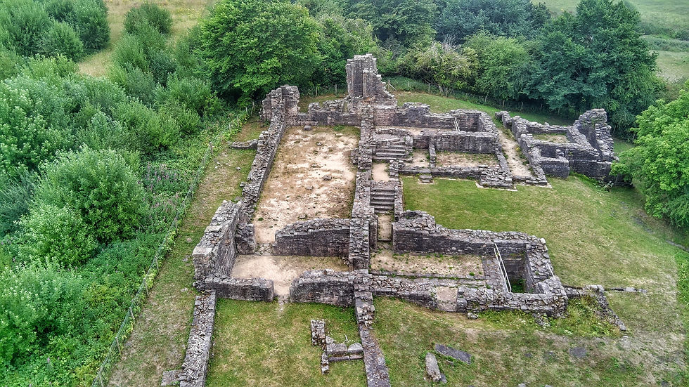 The air was cool and damp, the kind that clings to your hair and clothes, and brings out the deep scent of the foliage and old stone. A fine mist curled across the fields like smoke, softening the outlines of trees and blurring the boundaries between land and sky. As I stepped onto the path that leads to the ruins, I could hear nothing but the crunch of gravel underfoot and the distant noises of pheasants.